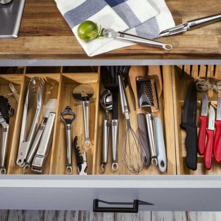 محیط آشپزخانه همانند سایر مکان های یک منزل مثل سالن پذیرایی، اتاق خواب، حمام و سرویس بهداشتی وسایل مخصوص خود را دارد و بدون وجود وسایل مرتبط تقریبا بلااستفاده محسوب میشود. بعنوان مثال برای دسته بندی و طبقه بندی انواع ادویه جات و حبوبات باید چند مدل ظرف نگهدارنده حبوبات و ادویه جات در جنس و سایز های مختلف تهیه کرد تا دسترسی به آنها آسوده تر باشد، یا بستگی به تعداد افراد داخل منزل و میزان مصرف مواد غذایی باید ظروف پخت و پز مختلف مانند سرویس های چند پارچه قابلمه و تابه تهیه کرد و آنها را در کابینت های ساخته شده در آشپزخانه قرار داد تا از شلوغ و بی نظم شدن آشپزخانه جلوگیری شود. همچنین ابزارهایی مانند چاقو، کفگیر و ملاقه، انبر سالاد و... وجود دارند که با استفاده از آنها فرآیند های انتقال مواد غذایی و انجام عملیات پخت و پز برای مصرف کننده و آشپز بسیار راحت تر انجام می شود. این ابزار ها نیز همانند سایر وسایل می بایست در جایگاه های ویژه خود همچون استند قرار بگیرند تا از زیبایی و نظم آشپزخانه لطمه نبیند. در ادامه مطلب شما با مهم ترین وسایل آشپزخانه و دسته بندی های آنها آشنا خواهید شد.