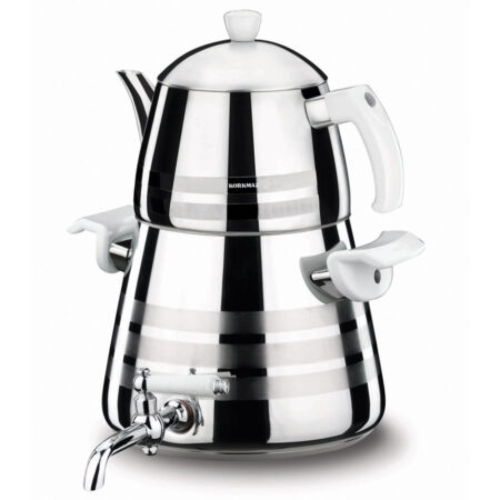 برای خرید سماور رو گازی با کیفیت و زیبا که از قیمت مناسبی هم برخوردار باشد می توانید از نکات مهمی که در بالا به آنها اشاره شد کمک بگیرید تا بتوانید بهترین انتخاب را در این زمینه داشته باشید البته قیمت سماورهای رو گازی به موارد زیادی بستگی دارد که یکی از آنها برند سماور رو گازی است. شرکت رابیما با بیش از 50 سال تجربه در زمینه واردات و توزیع وسایل و ملزومات آشپزخانه با برندهای معتبر داخلی و خارجی مانند کرکماز به همراه ضمانت نامه رسمی اصالت کالا و قیمت مناسب و جنس با کیفیت استیل ترک انواع متنوع و زیبایی از سماور رو گازی را به مشتریان خود ارائه می دهد.