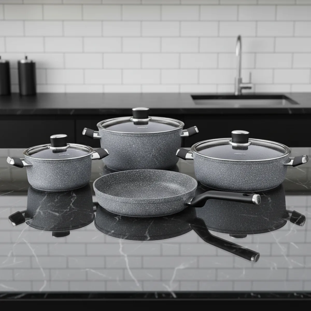 Korkmaz Palma 7 Pcs Granite Non-stick Cookware Set A3919