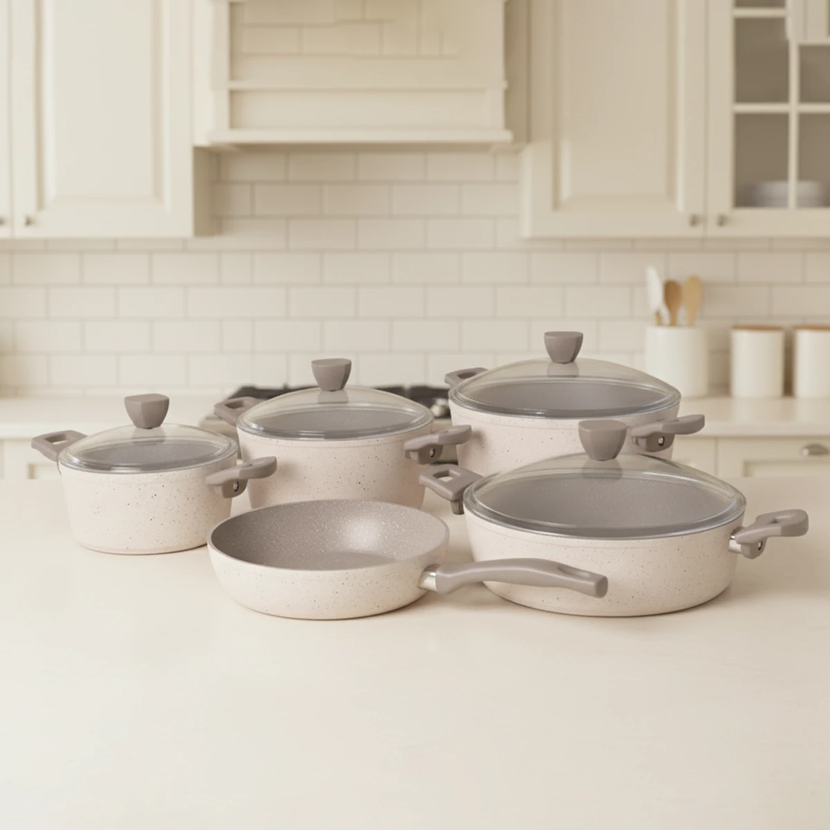 Riwald Preston 9 Pcs Cream Granite Cookware Set 6501109-0315