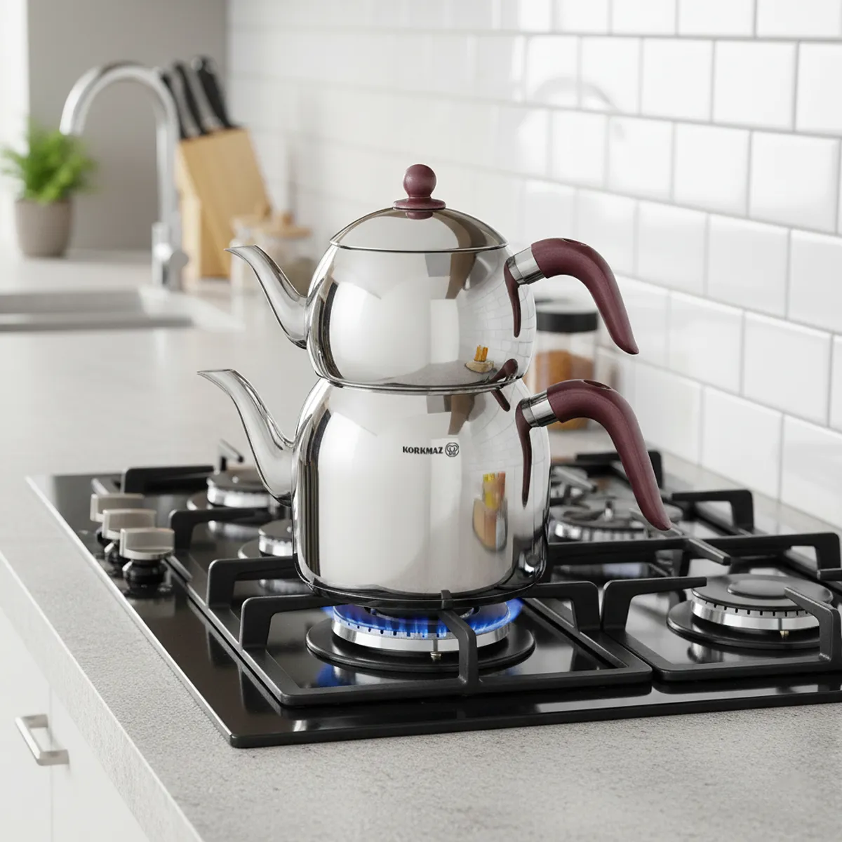 Korkmaz Retro Inox Teapot Set A195