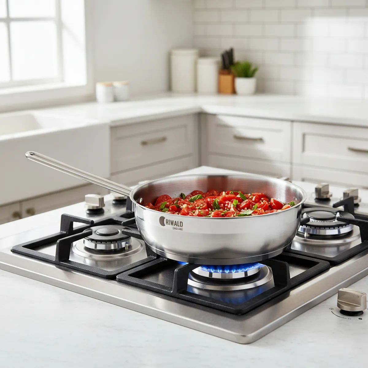 تابه استیل لیورپول ریوالد 6805020-1023 با بهره‌گیری از مرغوب‌ترین آلیاژ استیل ضدزنگ 18/10 (ترکیب ایده‌آل کروم و نیکل)، استاندارد جدیدی از دوام و سلامت را در آشپزخانه شما تعریف می‌کند. کفه ۳ لایه حرفه‌ای این محصول با تکنولوژی پیشرفته تولید شده است تا با توزیع کاملاً یکنواخت و سریع حرارت در تمام سطح ماهیتابه، از ایجاد نقاط داغ و سوختن موضعی غذا جلوگیری کرده و فرآیند پخت‌وپز را بهینه‌تر و سریع‌تر از همیشه پیش ببرد.