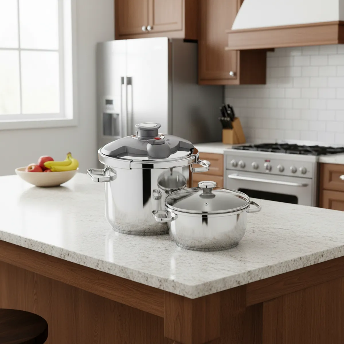 اگر به دنبال یک دستیار حرفه‌ای و ایمن در آشپزخانه هستید، سرویس زودپز دوقلو آکوا کرکماز 175 با بدنه‌ مقاوم استیل ضدزنگ ۱۸/۱۰ بهترین انتخاب برای شماست. این محصول با داشتن کفه کپسولی آلومینیومی برای توزیع یکنواخت حرارت و قابلیت تنظیم فشار پخت در دو مرحله، سرعت و کیفیت آشپزی شما را دوچندان می‌کند. سیستم قفل ایمنی هوشمند و دستگیره‌های ارگونومیک، امنیت و راحتی بی‌نظیری را حین کار برای شما فراهم می‌کنند. ظاهر صیقلی و آینه‌ای این محصول نیز زیبایی آشپزخانه شما را تکمیل کرده و شستشوی آن بسیار آسان است. علاوه بر این، طراحی ارگونومیک و سازگاری با انواع اجاق‌ها، از جمله القایی (اینداکشن)، باعث شده تا زودپز دوقلو آکوا کرکماز 175 گزینه‌ای ایده‌آل برای پخت غذاهای سالم و لذیذ در کمترین زمان ممکن باشد.
