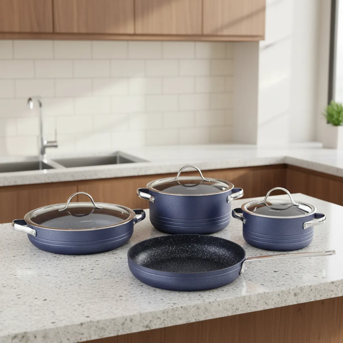 سرویس قابلمه 7 پارچه گرانیت آبی نفتی لینیا کرکماز 2619-1