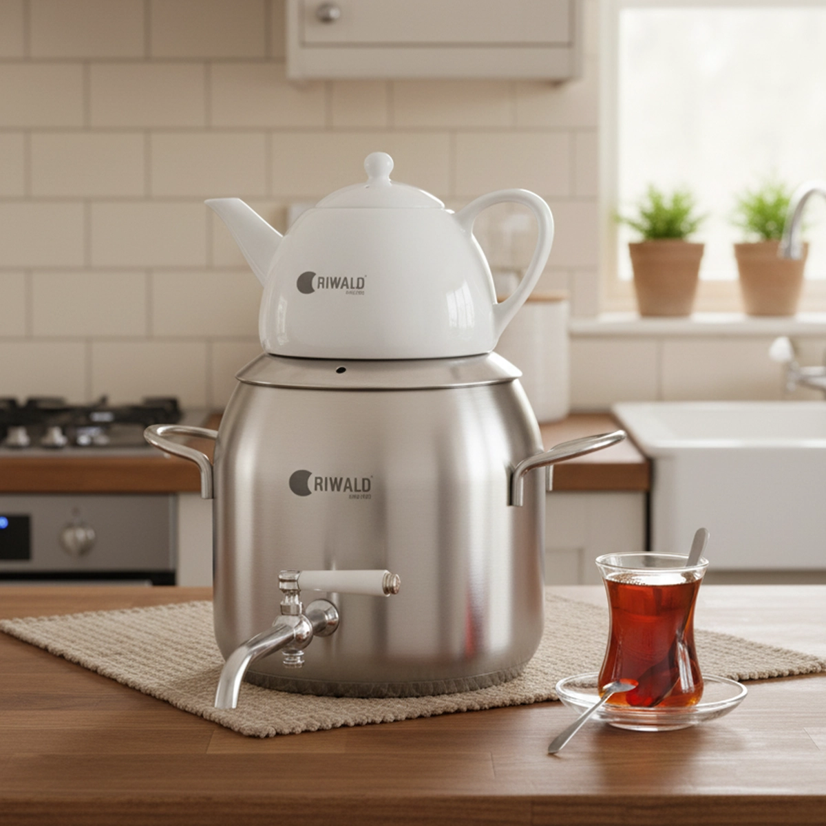 سماور روگازی لیورپول ریوالد 6818125-1020 یک سرویس کتری و قوری از برند مشهور و باکیفیت ریوالد (Riwald) است که با ترکیب جنس استیل و چینی، طراحی مدرن و کاربردی را با دوام بالا تلفیق کرده تا تجربه بهتری از آماده‌سازی چای را فراهم آورد. کتری این محصول از استیل ضد زنگ با کیفیت بالا از آلیاژ ۱۸/۱۰ کروم-نیکل ساخته شده که در برابر زنگ‌زدگی و خوردگی بسیار مقاوم است و ظرفیت آن ۴.۸ لیتر می‌باشد. قوری آن نیز از جنس چینی مرغوب با ظرفیت ۱ لیتر است که طعم و عطر چای را به خوبی حفظ می‌کند و یکی از ویژگی‌های منحصر به فرد آن، مقاومت در برابر حرارت مستقیم است؛ به طوری که می‌توان آن را به صورت جداگانه و بدون نگرانی از شکستن، مستقیماً روی شعله گاز قرار داد.