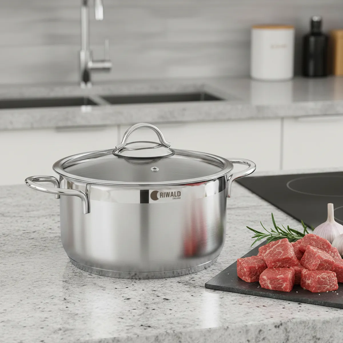 قابلمه استیل لیورپول ریوالد 6803218-1023 با بهره‌گیری از مرغوب‌ترین آلیاژ استیل ضدزنگ 18/10 (ترکیب ایده‌آل کروم و نیکل)، استاندارد جدیدی از دوام و سلامت را در آشپزخانه شما تعریف می‌کند. کفه ۳ لایه حرفه‌ای این محصول با تکنولوژی پیشرفته تولید شده است تا با توزیع کاملاً یکنواخت و سریع حرارت در تمام سطح قابلمه، از ایجاد نقاط داغ و سوختن موضعی غذا جلوگیری کرده و فرآیند پخت‌وپز را بهینه‌تر و سریع‌تر از همیشه پیش ببرد.