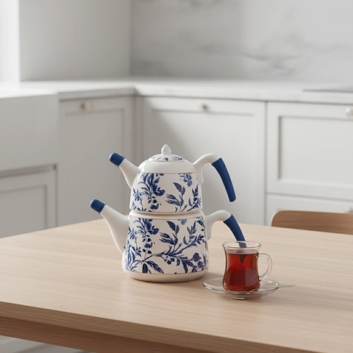 اگر به دنبال ترکیبی از زیبایی، کیفیت و کارایی هستید، سرویس کتری و قوری بیرمینگام ریوالد 6724112-1134 بهترین انتخاب برای تکمیل آشپزخانه شماست. این محصول با طراحی گلدار آبی روی چینی سفید و لعاب‌دار، نه تنها جلوه‌ای کلاسیک به فضای شما می‌بخشد، بلکه طعم اصیل و طبیعی چای را حفظ می‌کند. جنس چینی مرغوب این سرویس باعث انتقال یکنواخت حرارت و دوام بالا می‌شود. دسته‌های چینی آن، مقاوم به حرارت هستند و هماهنگی کاملی با بدنه دارند، که استفاده‌ای راحت و ایمن را برای شما فراهم می‌کنند. از ویژگی‌های کاربردی این محصول، وجود پایه وارمر فلزی مشکی رنگ است که به شما امکان می‌دهد کتری و قوری را روی اجاق قرار دهید یا با استفاده از حرارت کم، چای خود را برای مدت طولانی گرم نگه دارید. علاوه بر این، خود کتری و قوری چینی را می‌توان جداگانه به صورت مستقیم روی شعله گاز قرار داد که دم کردن چای را سریع‌تر و آسان‌تر می‌کند. این محصول با حجم قوری 1/0 لیتر (مناسب برای ۳ تا ۴ نفر) و حجم کتری 2/0 لیتر، انتخابی ایده‌آل برای هر خانه‌ای است. با کتری و قوری بیرمینگام ریوالد، لحظات لذت‌بخش و شیکی را در کنار عزیزانتان تجربه کنید.