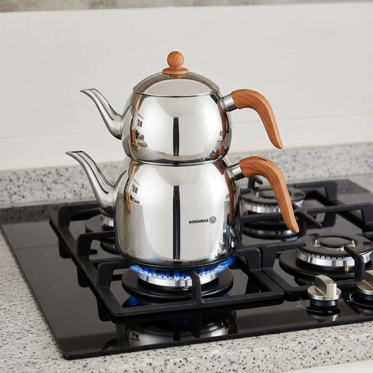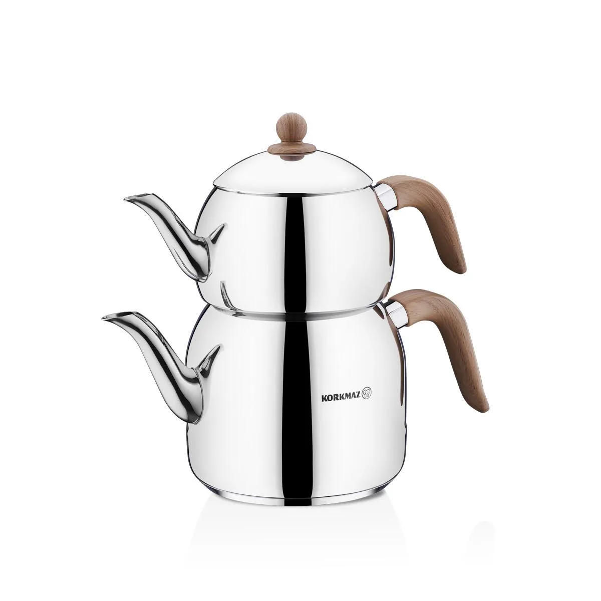 کتری و قوری 1.1 + 2.5 لیتر استیل براق رترو کرکماز 196