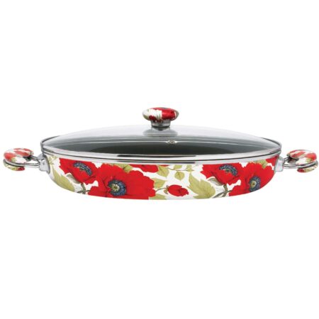 پوشش سه لایه PTFE با ظاهری آتشفشانی و ویژگی های عالی نچسب در سطوح داخلی و مقاومت بیشتر در برابر خراشیدن، پخت و پز بدون گاز سمی (حاوی مواد مضر مانند نیکل، سرب، کادمیوم، BPA ،PFOA و غیره نیست)، که به آسانی تمیز می شود.
